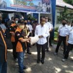 Penyerahan bantuan 1 ton beras diterima langsung oleh H Harnojoyo dari Ketua JPN Jeep Palembang Nian H Harobin dilaksanakan di Posko Gugus Tugas Palembang di Jalan Tasik.