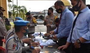 Satu-persatu personel memperlihatkan senpi mereka kepada tim pemeriksa. Pemeriksaan ini bertujuan untuk mengantisipasi munculnya kasus penyalahgunaan senpi yang berdampak hukum.