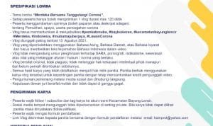 Peserta bukan pegawai Kecamatan Bayung Lencir atau kerabat dan keluarga. Panitia mempersilakan penggambaran opininya baik secara paparan atau deskripsi adegan tentang pemulihan, upaya, serta usaha pencegahan Corona. Vlog harus diunggah di akun media sosial masing-masing peserta dan mencantumkan & menyebutkan #baylenkeren, #kecamatanbayunglencir #Merdeka #indonesia #mubamajuberjaya