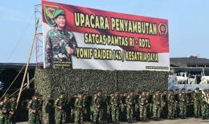Securitynews.co.id, PALEMBANG- Komandan Korem (Danrem)) 044/Gapo Brigjen Tni Jauhari Agus Suraji S.I.P, S.Sos mengikuti upacara penyambutan Satgas Pamtas RI – RDTL Yonif Raider 142/KK, Minggu (23/8/2020).