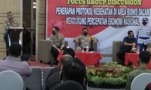 ”Hari ini kita melaksanakan FGD dengan Tema Penerapan Protokol Kesehatan di Area Bisnis dalam Mendukung Percepatan Ekonomi Nasional. Mari kita bersama-sama khususnya yang bekerja di area bisnis, ada hotel, restoran, juga bagi teman-teman yang bergerak di jasa pengamanan untuk menerapkan protokol kesehatan,” ujar Kombes Pol Heru Trisasono.