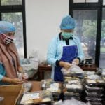 Kali Feby Deru dan kawan-kawan membuat makanan dengan menu telur semur, tahu sambal tempe, serta sayur. Setelah selesai ratusan nasi kotak itupun dibagikan ke Kecamatan Ilir Timur II, Sematang Borang, serta Kecamatan Sako.