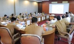 Rapat pembahasan rencana pembangunan jalan dengan Dana Corporate Sosial Responsibility (CSR) oleh PT. Mitra Aneka Rezeki (MAR) di pimpin Sekretaris Daerah HM Senen Har di ruang rapat Sekda Pemkab Banyuasin, Senin (6/7).