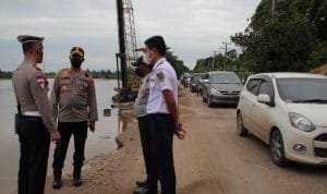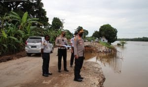 Securitynews.co.id, SEKAYU- Kapolres Musi Banyuasin AKBP Alamsyah Pelupessy, SH, SIK MSi didampingi Kasat Lantas AKP Sandi dan Dishub melakukan pemantauan kondisi Jalan Sekayu-Lubuk Linggau di Desa Sukarami yang mengalami longsor akibat terjangan arus Sungai Musi yang menyebabkan terjadi abrasi tepatnya di Km 131, Kamis (11/11/21) siang.