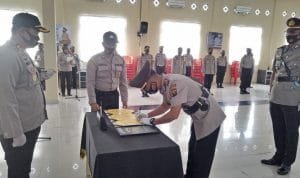 Securitynews.co.id, SEKAYU- Senin 31 Agustus 2020, Kapolres Musi Banyuasin AKBP Erlin Tangjaya SH SIK memimpin serah terima jabatan Kasat Narkoba Polres Muba dan Kapolsek Bayung Lencir di aula H. Alex Noerdin Polres Muba. Serah terima jabatan dilakukan berdasarkan surat telegram kapolda Sumsel nomor : ST/1083/ VIII/ KEP/ 2020 tanggal 12 Agustus 2020 dan KEP Kapolda Sumsel nomor Kep/ 454/ VIII/ 2020 tanggal 12 Agutus 2020 tentang pemberhentian dari dan pengangkatan dalam jabatan di lingkungan Polda Sumsel.