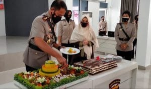 Acara syukuran itu sendiri ditandai pemotongan tumpeng yang berlangsung sederhana dan khitmad ini dipimpin langsung Kapolres AKBP Alamsyah Pelupessy SH SIK MSi.