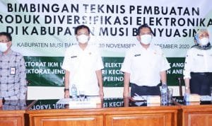 Securitynews.co.id, SEKAYU- Pemerintah Kabupaten Musi Banyuasin bekerja sama dengan Kementerian Perindustrian RI melalui Dirjen Industri Kecil Menengah dan Aneka (IKMA) menggelar Bimbingan Teknis Diversifikasi Produk Elektronika dan Memberikan Bantuan Peralatan Perakitan Lampu LED kepada Pelaku Industri Kecil Mikro di Kabupaten Muba, di Aula Hotel Randik Sekayu, Senin (30/11/2020).