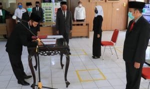 Securitynews.co.id, SEKAYU– Sebanyak 15 Aparatur Sipil Negara (ASN) di lingkungan Pemerintah Kabupaten Musi Banyuasin (Muba) dilantik dan diambil sumpah melalui teleconference oleh Bupati Muba Dr H Dodi Reza Alex Noerdin Lic Econ MBA diwakili Asisten Bidang Administrasi Umum Setda Muba Drs H Yusuf Amilin, Selasa (6/10/2020).