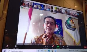 Sekda Apriyadi didampingi Sekretaris Dinas Pemberdayaan Masyarakat Desa Deni Sukmana hadiri webinar bertema Peran Pemerintah Desa Dalam Program Pencegahan, Pemberantasan Penyalahgunaan dan Peredaran Gelap Narkoba (P4GN) Wujudkan Desa Bersih Narkoba di Ruang Rapat Sekda Muba, Rabu (23/6/2021).