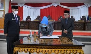 Di akhir acara dilakukan penandatanganan antara Sekda dan Ketua DPRD terkait dengan agenda penyampaian laporan hasil pelaksanaan kegiatan reses pimpinan dan anggota DPRD Sumsel. (Adv/Akip)