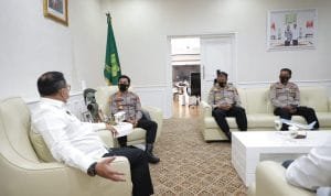 Securitynews.co.id, SEKAYU- Bupati Musi Banyuasin Dr H Dodi Reza Alex Noerdin menyambut kunjungan Kepala Sekolah Polisi Negara (SPN) Betung Polda Sumatera Selatan ke Bumi Serasan Sekate, di Ruang Audiensi Bupati Muba, Kamis (14/1/2021).