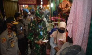 Securitynews.co.id, PALEMBANG- Wakapolda Sumsel Brigjen Pol Rudi Setiawan, S.IK SH MH bersama Danrem 044 Gapo Brigjen TNI Jauhari Agus Suraji, Kasat Pol PP Prov. Sumsel H. Aris Saputra, didampingi oleh Kapolsek Ilir Timur I Kompol Deni Triana menyosialisasikan Protokol Kesehatan Covid 19 kepada masyarakat serta pedagang yang beraktivitas di Pasar 16 Ilir Palembang, Kamis (10/9/2020).